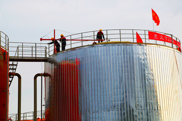 常態(tài)化控制疫情,項目建設(shè)全面復(fù)工。陽光照耀下,乙二醇項目室外建筑色彩亮麗,現(xiàn)代時尚,給人以激情和力量;燈光映照下,工廠操作間寬敞明亮,工人們調(diào)試神情專注,設(shè)備設(shè)施完好精良。