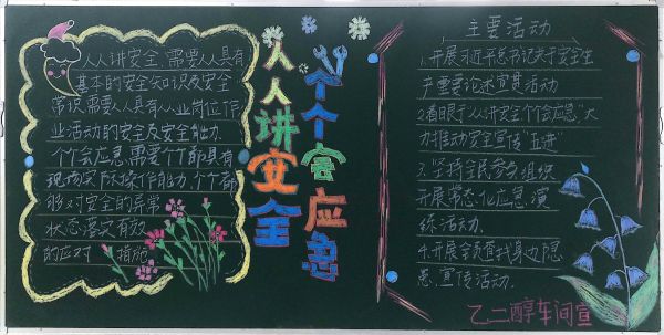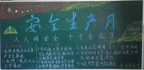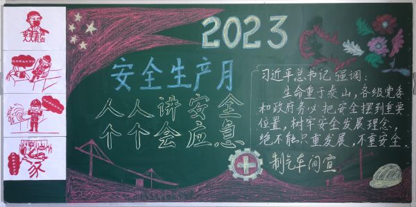 每年6月份是我國(guó)的安全生產(chǎn)宣傳教育月,也被稱為“安全生產(chǎn)月”。自開展“人人講安全、個(gè)個(gè)會(huì)應(yīng)急”為主題的“安全生產(chǎn)月”活動(dòng)啟動(dòng)以來,彬州公司各部門百花齊放,精心設(shè)計(jì)黑板報(bào)的版面和內(nèi)容,圖文并茂,內(nèi)容豐富多彩,大力營(yíng)造良好安全工作氛圍。