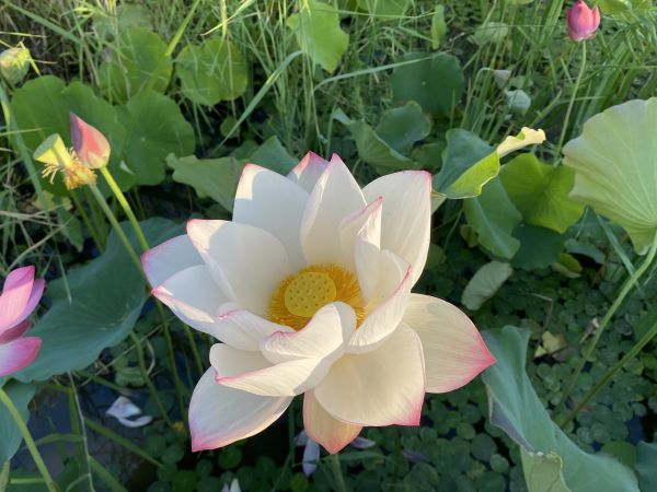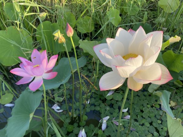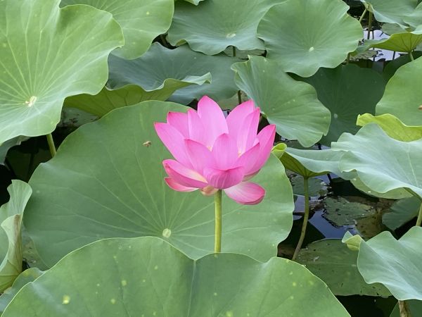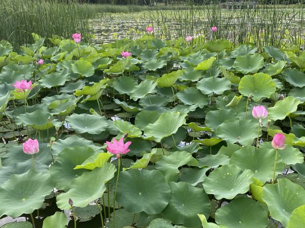 周末清晨六點(diǎn),和好友相約到南湖公園賞荷花。走進(jìn)公園沿著木橋靠近湖面,恰逢太陽慢慢升起,在水面折射出七彩光暈,微風(fēng)吹過平靜的水面,給湖面留下陣陣漣漪。只見荷葉中每朵荷花都是出污泥而不染,淡雅純凈使人陶醉。靜靜欣賞著這亭亭玉立的荷花,看著蜜蜂在荷花上飛來飛去,腦海中不由得想起《愛蓮說》中的:予獨(dú)愛蓮之出淤泥而不染,濯清漣而不妖,中通外直,不蔓不枝”這句詩詞。是啊,荷花雖出自淤泥之中,卻纖塵不染,出自于清水之中卻又不妖媚,荷花展現(xiàn)在世人面前的就是一種高貴正直的象征,同時(shí)也是清廉的象征。