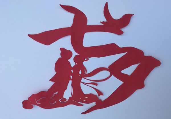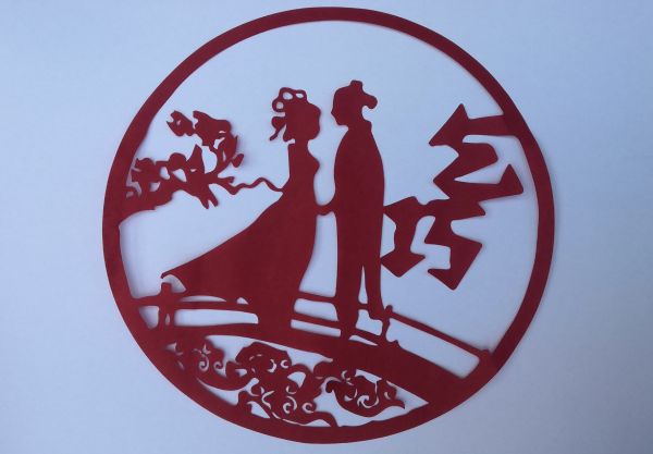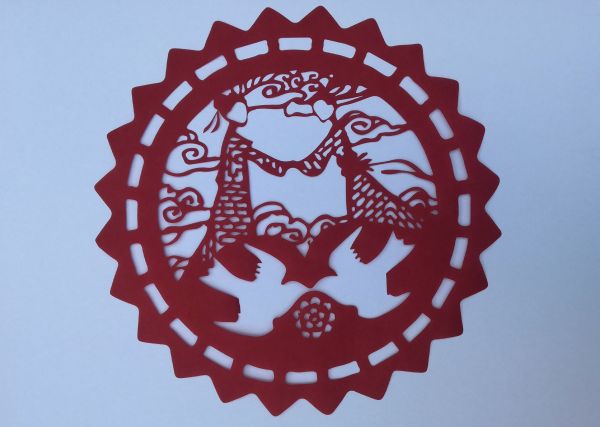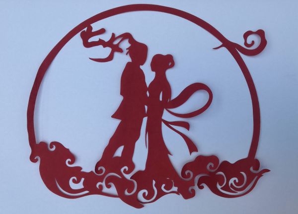肖歡剪紙作品——《不“七”而遇 滿心歡“夕”》