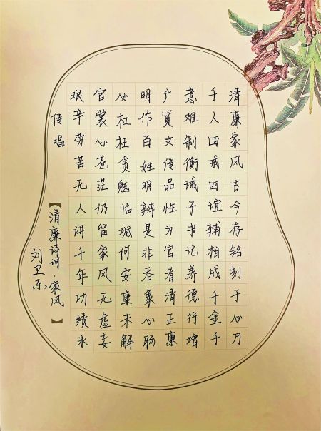 文以化人,廉以養(yǎng)德。為進一步推動廉潔文化建設實起來、強起來,10月14日,彬州公司生產部開展了“翰墨書正氣·妙筆頌清廉”硬筆書法大家寫活動,以豐富的廉潔文化啟智潤心,涵養(yǎng)廉潔清風。