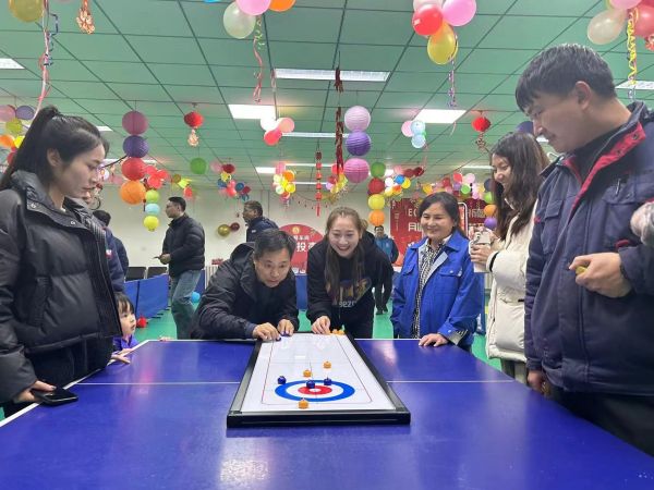 農歷正月十三晚上的彬州公司職工活動中心元宵節(jié)游藝晚會現(xiàn)場,花燈錦繡,流光溢彩,游人如織,熱鬧非凡。由乙二醇分會職工帶來的開場節(jié)目鼓樂《男兒當自強》及彬州公司女職工帶來的《新年快樂》《黑桃A》《眉飛色舞》舞蹈串燒,將整個游藝現(xiàn)場歡快喜慶的節(jié)日氣氛推向高潮。游藝現(xiàn)場設有三個游戲區(qū)域,有傳統(tǒng)的謎語競猜以及多款好玩的游戲桌面冰壺、眼疾手快、團團圓圓、手腳并用、投壺招財、龍飛鳳舞等,整個晚會現(xiàn)場崇尚節(jié)約理念,合理運用乒乓球桌等現(xiàn)有器材以及廢舊鐵絲、紙箱等物裝扮布置,繁簡得當、錯落有致。在傳統(tǒng)燈謎區(qū)域,職工們駐足思考,盡情體驗中華民族傳統(tǒng)文化的奧秘。幾款小游戲輕松愉快,看似難度不大,但玩起來也會心跳加速。職工及家屬們穿梭在各區(qū)域之間猜謎互動、玩游戲,歡欣鼓舞的節(jié)日氛圍洋溢在每個人的臉上。